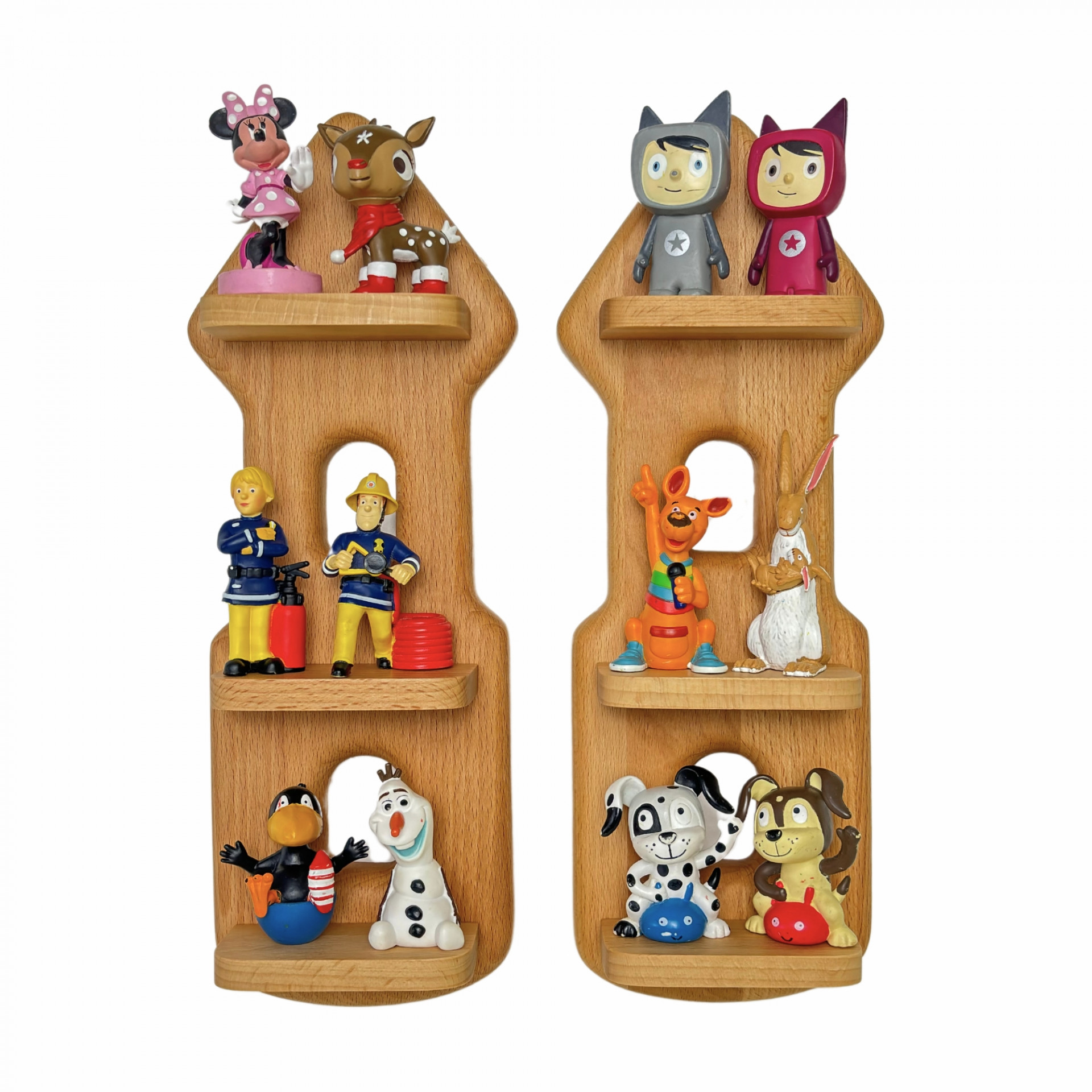 - Die Tableaus, auf denen die Tonie Figuren stehen, sind ebenfalls aus Massivholz Buche gefertigt und mit Dübeln an der Grundplatte verleimt