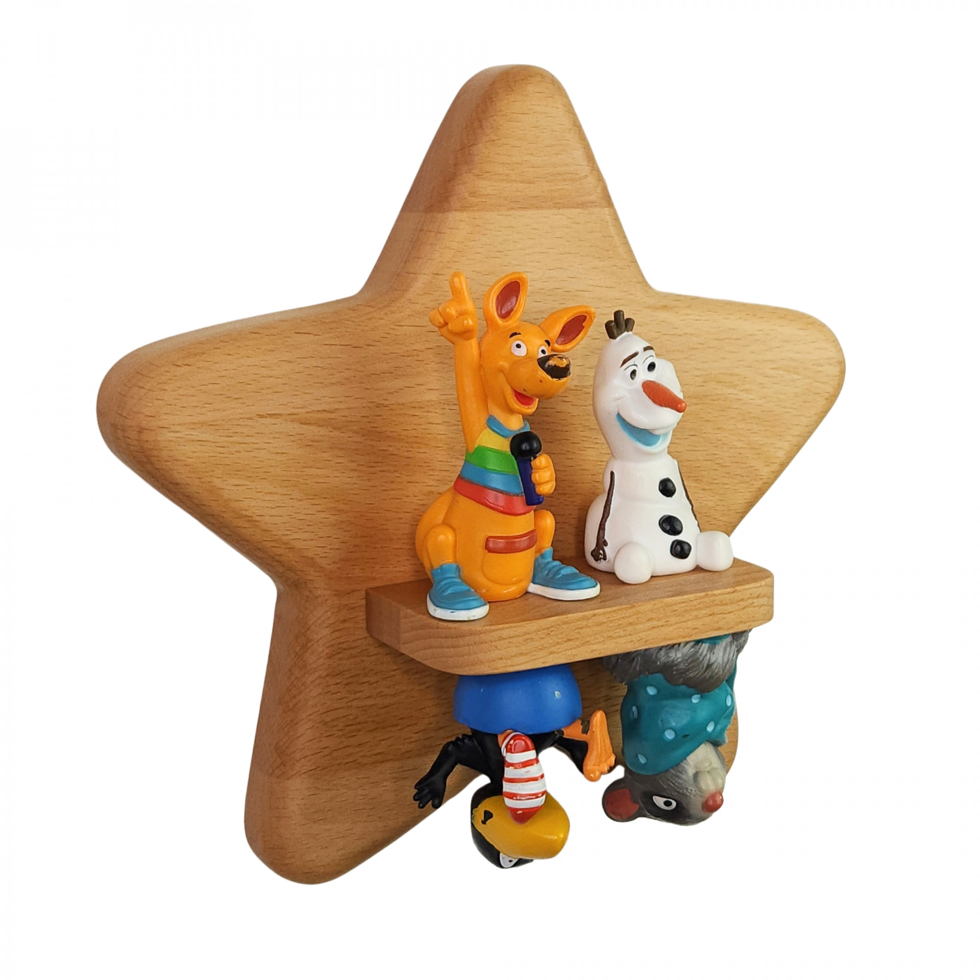 Handgemachtes Tonie Regal aus Massivholz in der Form eines kleinen Stern, mit magnetischen Regalen, ohne CNC Fräse und sichtbare Magnete/Metalle gefertigt.